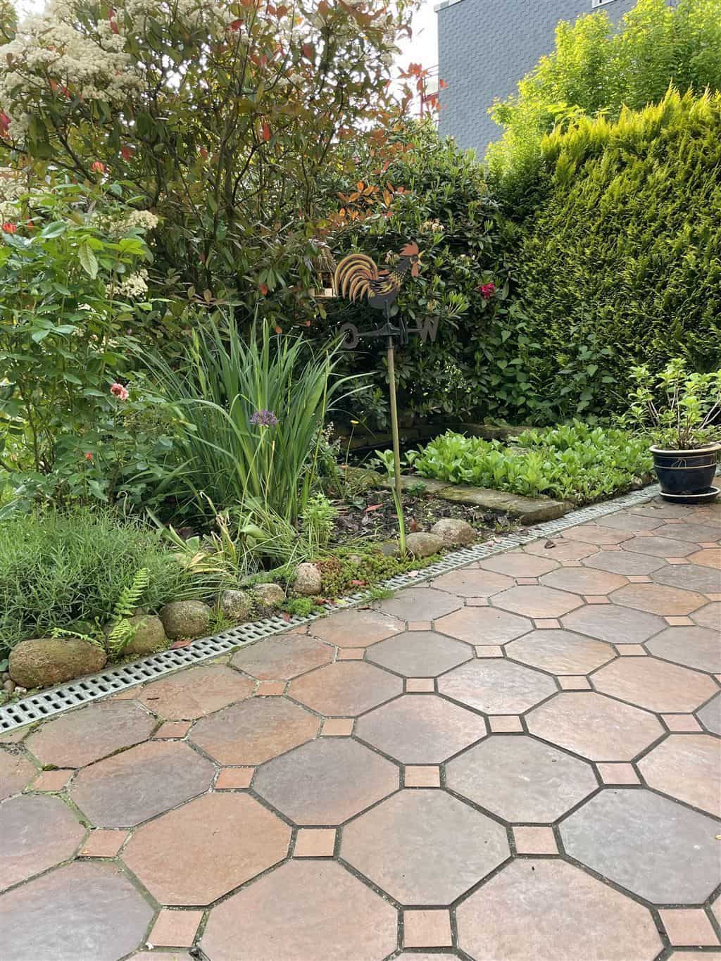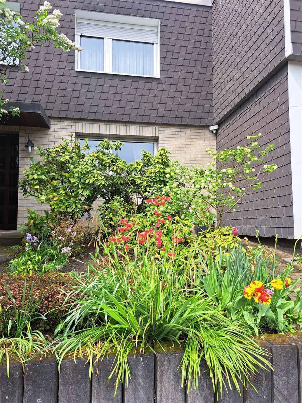 Der kleine Garten in Süd/West-Ausrichtung ist sehr liebevoll mit zahlreichen Pflanzen angelegt. Dies gilt auch für den kleinen Zierteich, der unmittelbar an der teilüberdachten Terrasse liegt. Der Vorgarten mit einer Rollstuhlrampe und 1 PKW-Stellplatz ist ebenfalls üppig begrünt. Eine PKW-Garage, die über ein eigenes Grundbuch verfügt, kann optional dazu erworben werden.