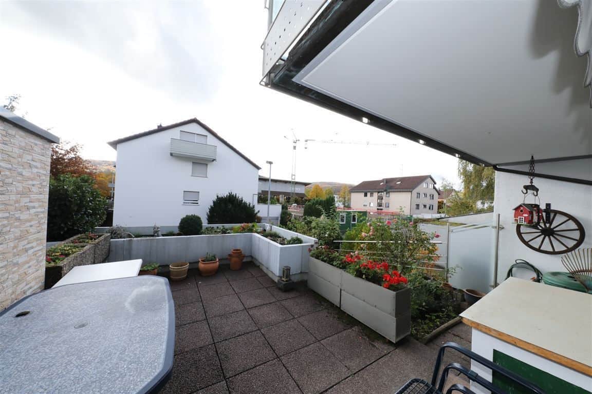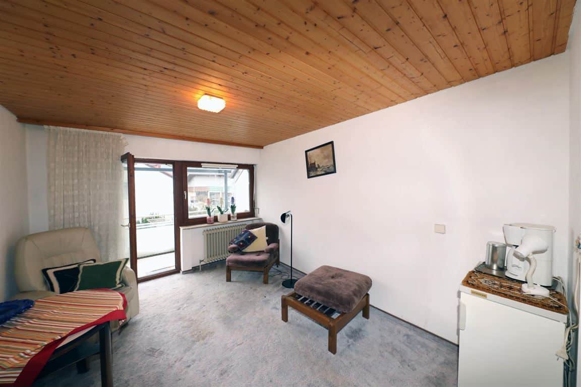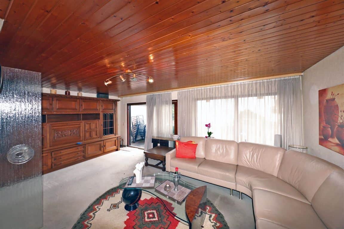 Von dem Wohnzimmer aus erreichen Sie die Terrasse mit elektrischer Markise und das Südgrundstück mit einer Größe von ca. 187 m².