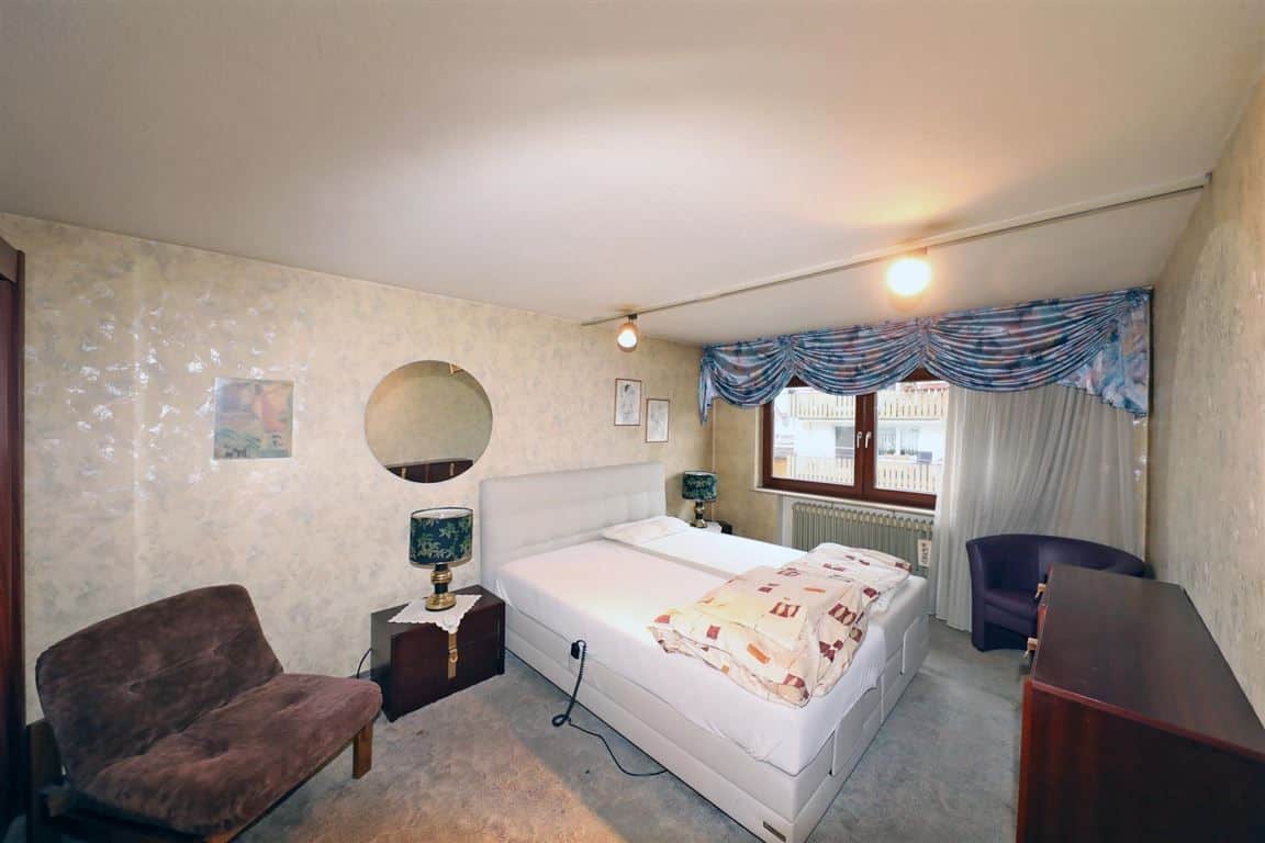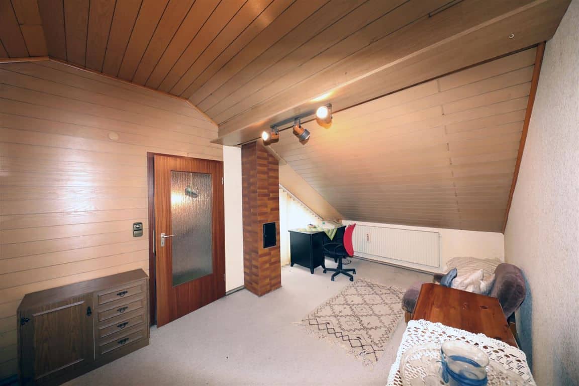 Im Obergeschoß befinden sich ein Bad mit Dusche, Wanne, Doppelwaschbecken und Fenster, 3 Schlafzimmer, eine Abstellkammer und ein überdachter Balkon.