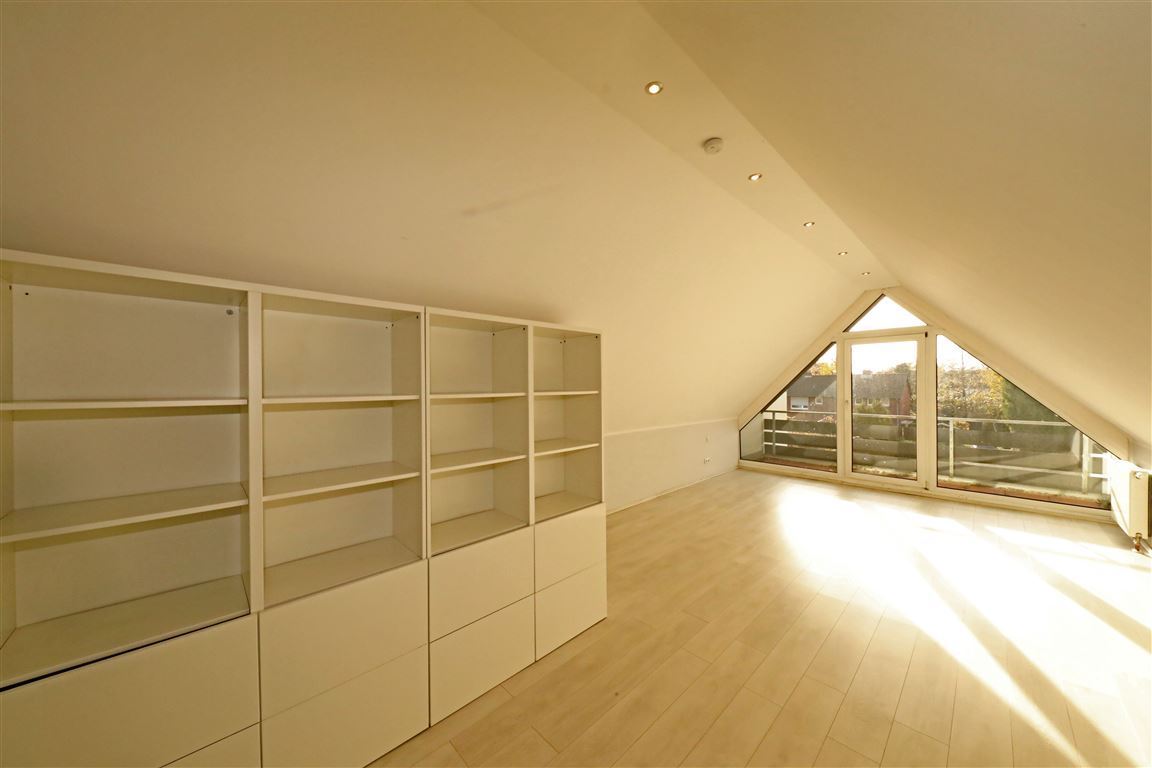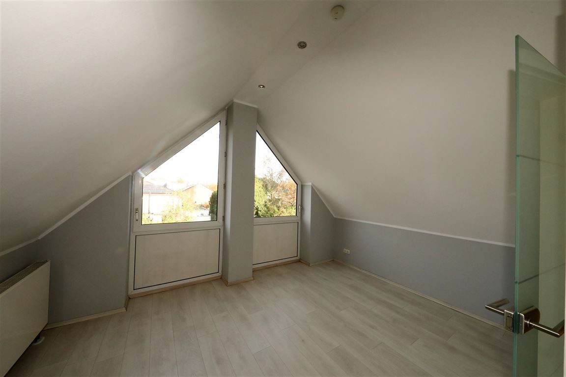 Das gedämmte Dachgeschoss ist wohnlich ausgebaut, in zwei Zimmer unterteilt und bietet einen zusätzlichen Balkon zur Gartenseite.