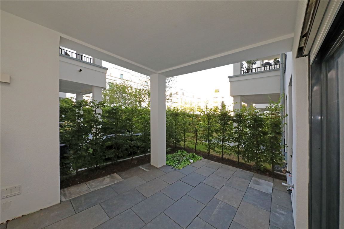 Das Herzstück dieser Wohnung ist die teilweise überdachte Sonnenterrasse mit Blick ins Grüne. Geschützt vor fremden Blicken genießen Sie hier Ihre Privatsphäre – sei es beim ersten Kaffee am Morgen oder beim Glas Wein am Abend.