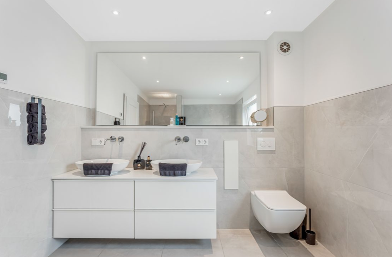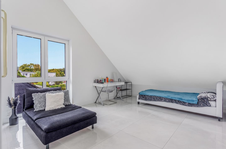 Die vier Schlafzimmer im Obergeschoss bieten Platz für jedes Familienmitglied – für Kinderträume, Homeoffice oder Gäste. Zwei moderne, elegant gestaltete Bäder sorgen für Komfort und Entspannung – morgens kein Gedränge, abends Wellnessgefühl.