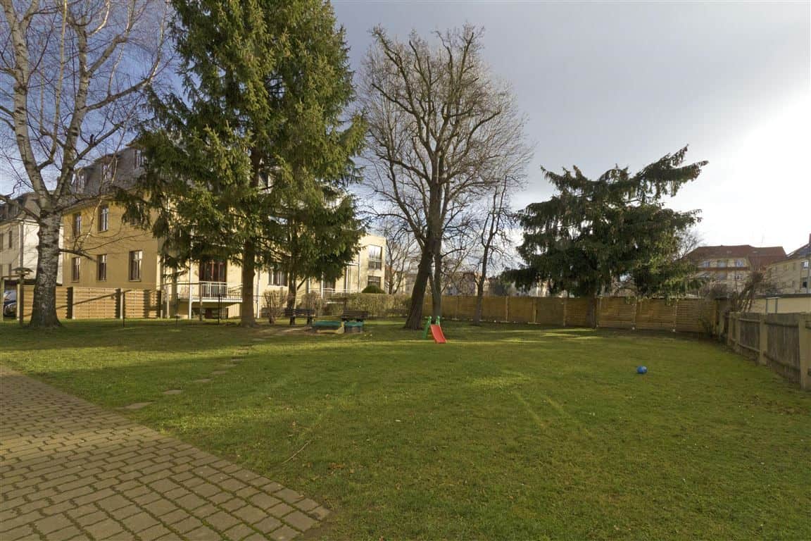 Sie befindet sich in der Nähe einer Parkanlage an einer der attraktiven Dresdner Einkaufsstraßen. Zum Sonnenbaden oder Spazierengehen bieten sich die nahe gelegenen Elbwiesen an.