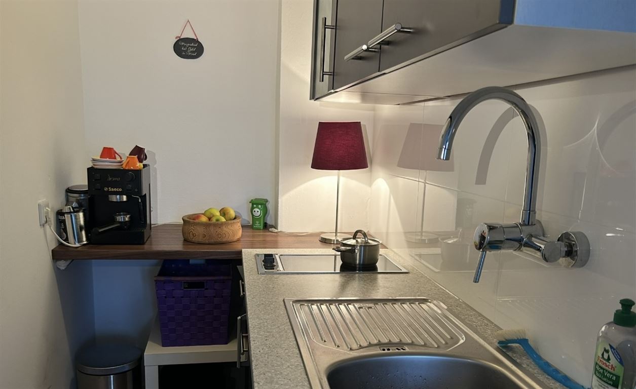 Das modernisierte Duschbad verfügt über eine angenehme Fußbodenheizung und bietet zeitgemäßen Komfort. Die ebenfalls modernisierte Kochnische ist mit einem Ceranfeld ausgestattet und fügt sich funktional und platzsparend in den Wohnraum ein.