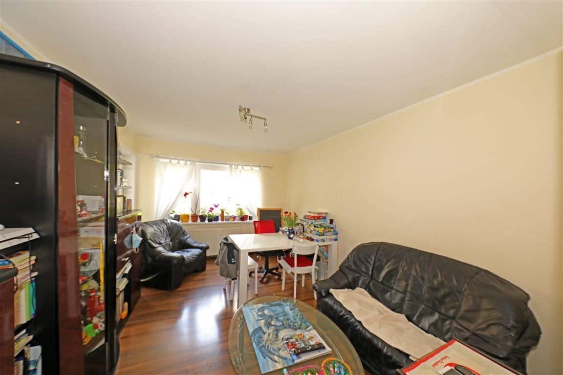 Die Wohnung wird dominiert von einem Wohnraum mit getrenntem Küchenbereich. Ein Bad mit Wanne, zwei Schlafzimmer sowie ein Balkon runden das Angebot ab.