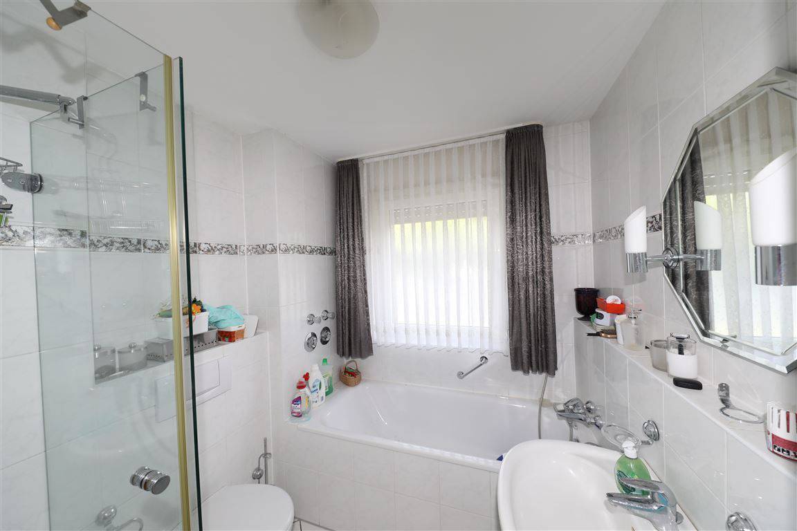 Ein lichtduchflutetes, Wohnzimmer mit einem Bad mit Dusche, Wanne und Fenster sowie einem Balkon zur Straßenseite mit elektrischen Rollläden gehören zur Ausstattung. Zur Immobilie gehört eine PKW-Garage in Standardmaß.