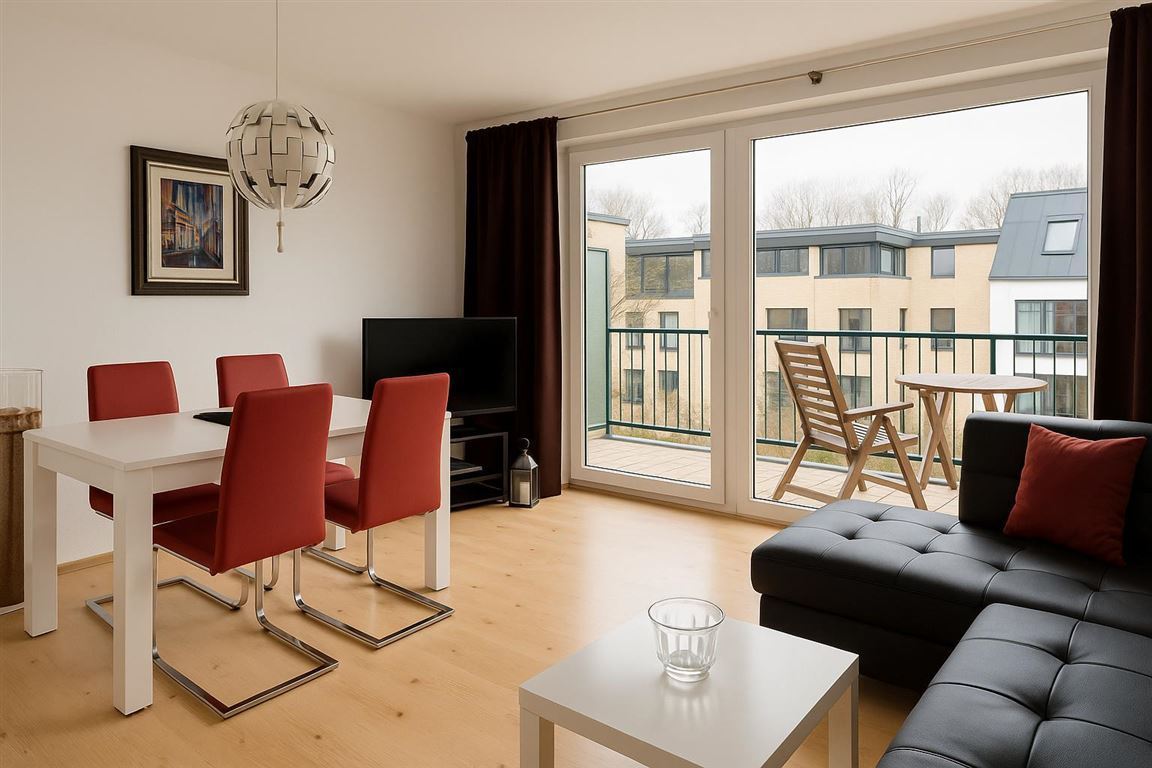 Der lichtdurchflutete Wohnbereich überzeugt mit einem großzügigen Fenster und direktem Zugang zum sonnigen Südwest-Balkon – der ideale Ort, um den Feierabend entspannt im Freien zu genießen.