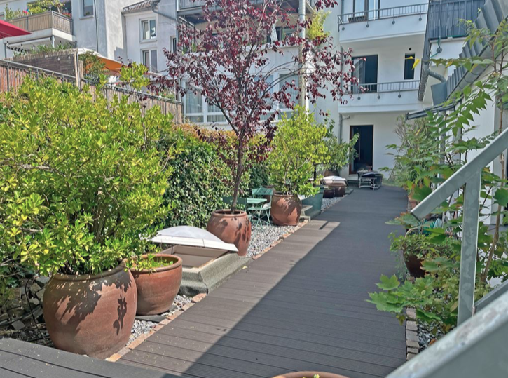 Das absolute Highlight ist die traumhafte südwest Dachterrasse, die zum Verweilen und Genießen einlädt. Stellen Sie sich vor, an warmen Abenden die Sonne untergehen zu sehen, den Blick über die Dächer Düsseldorfs schweifen zu lassen oder einfach nur bei einem Glas Wein die frische Luft zu genießen. Dieser private Außenbereich ist Ihr persönlicher Rückzugsort vom Alltag.