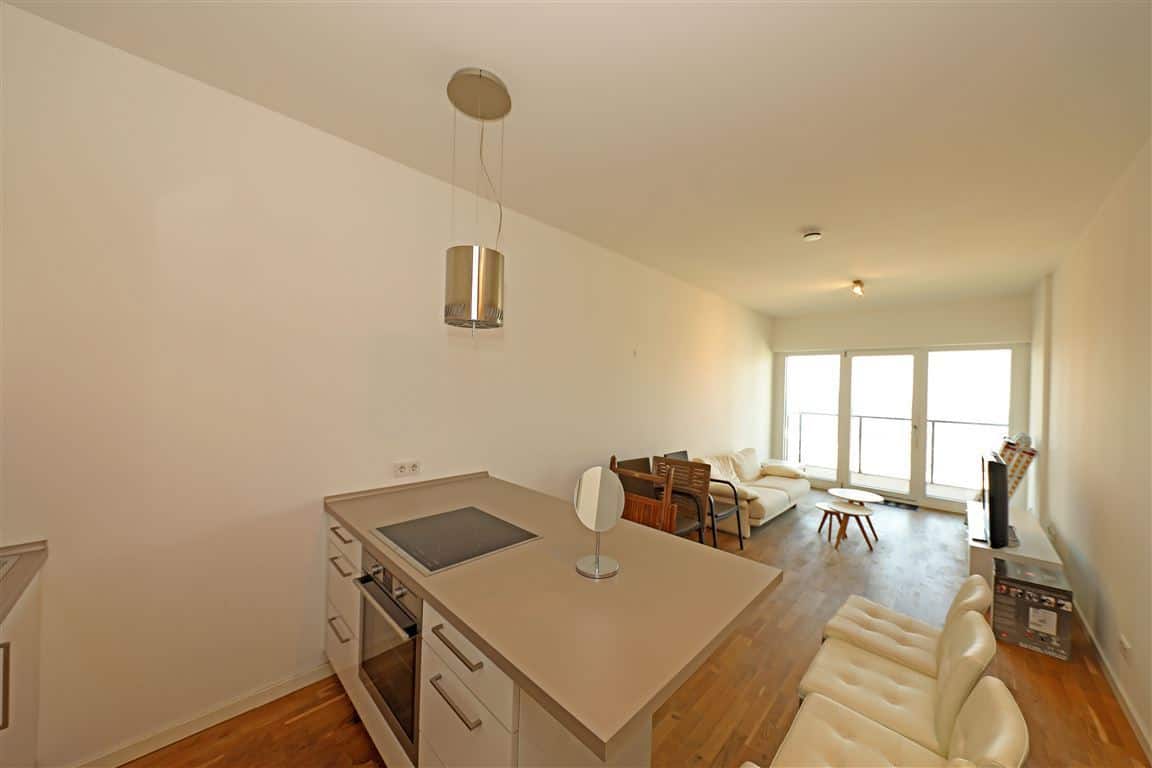 Die Wohnung wird von einem grossen hellen Wohnraum charakterisiert mit offener Küche. Ein großes Bad mit Dusche rundet dieses Angebot ab. Über eine große Fensterfront im Wohnraum gelangt man auf den/die ca. 10 m² Balkon.