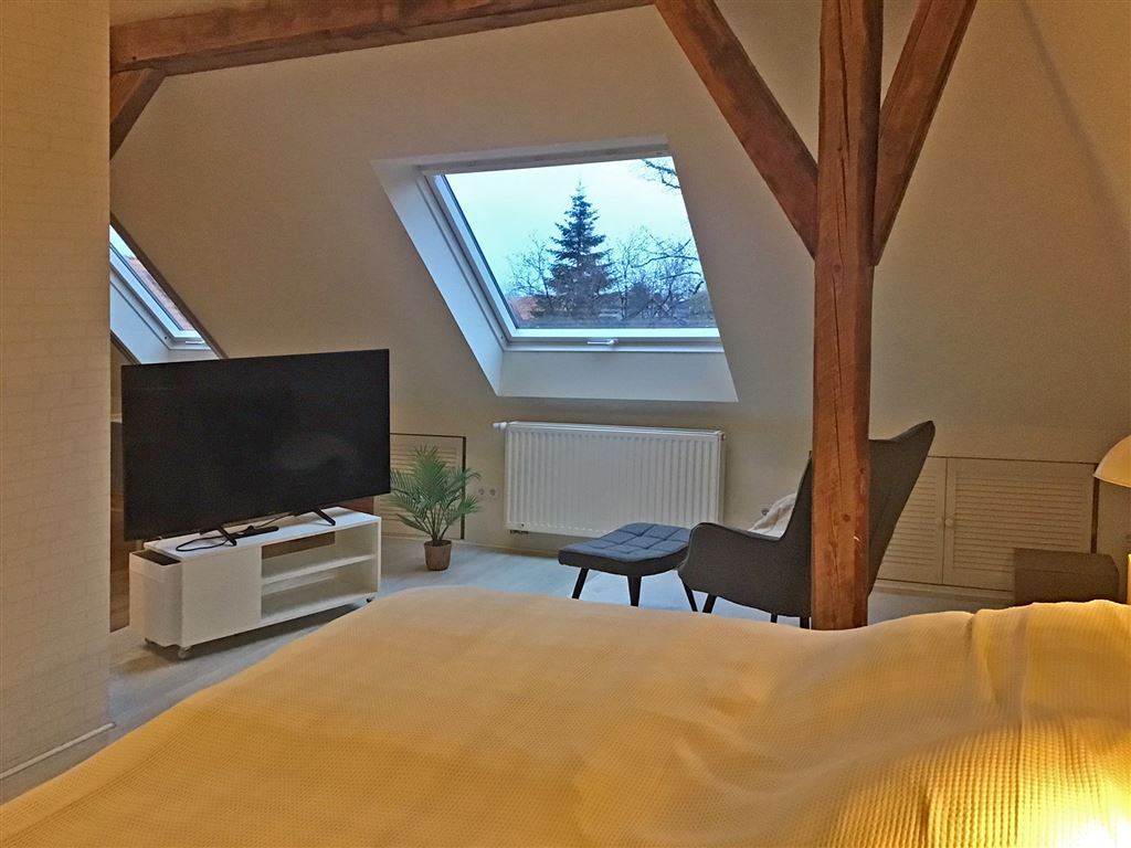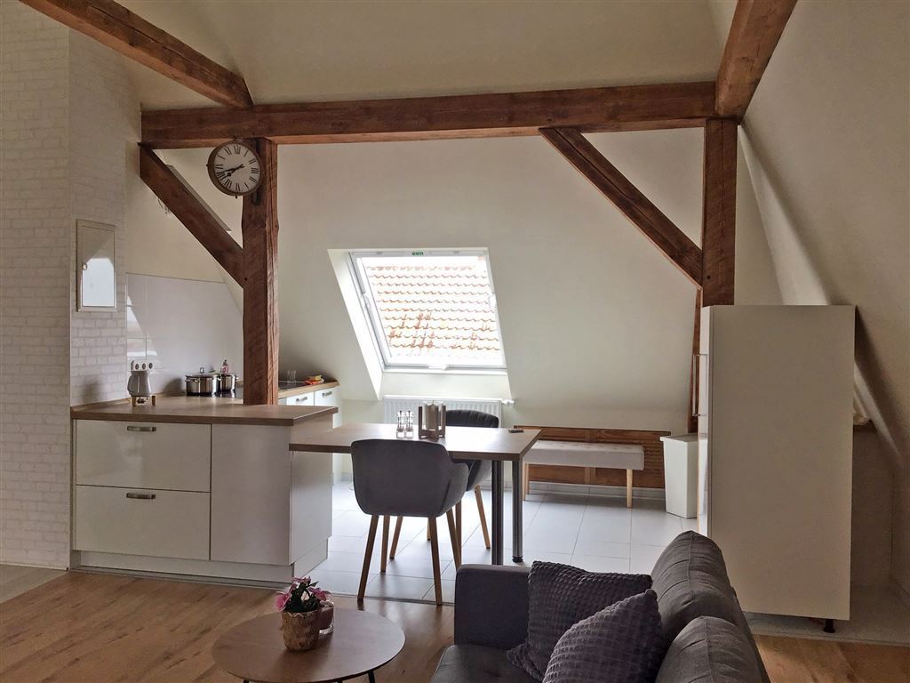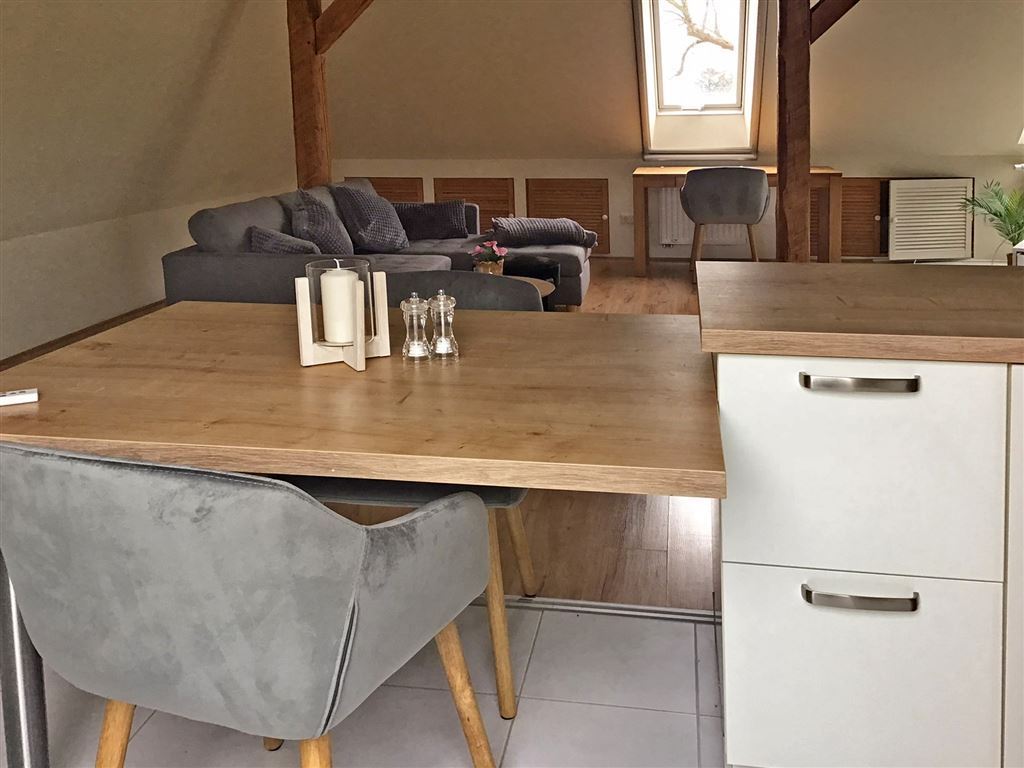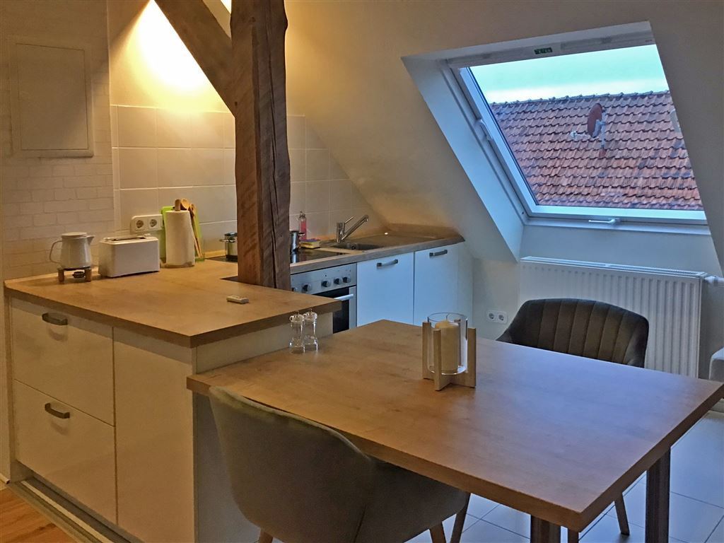Diese außergewöhnlich schöne Wohnung mit hohen Decken und Eichenholzbalken bietet viel Wohlfühlfaktor und Wohnkomfort: ein gemütliches Doppelbett (1,80 x 2m), Smart-TV mit allen Sat-Programmen, Nespesso-Kaffeemaschine, voll ausgestattete Küche inkl. Geschirrspülmaschine, Kühl- und Gefrierschrank, Herd und Ofen, ein separater Schreibtisch. Ein PKW-Stellplatz befindet sich direkt am Haus. Eine Waschmaschine und Trockenraum befindet sich im Keller des Hauses.