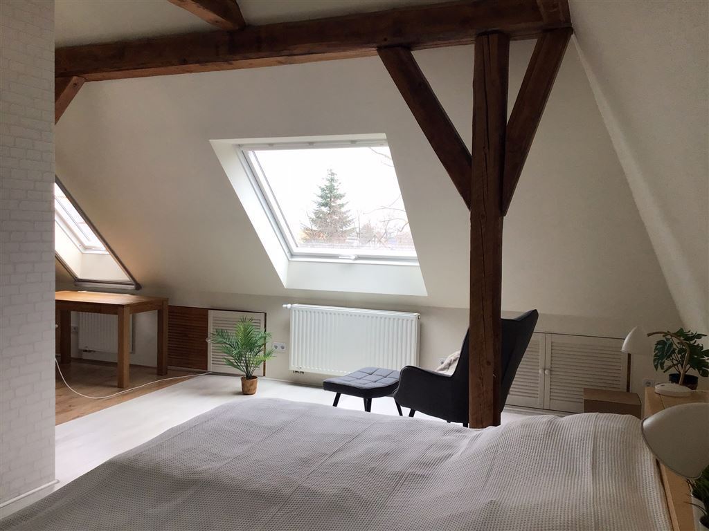 Willkommen in diesem hellen und offenen 75 m² Loft-Studio. Die liebevoll neuwertige voll eingerichtete Zentrum- und Messenahe Wohnung im Dachgeschoss eines 3-Familien-Hauses liegt nah an der A2 und A7- Auffahrt und ist doch bemerkenswert ruhig. Eine ideale Ruhe-Oase nach einem anstrengenden Messetag.